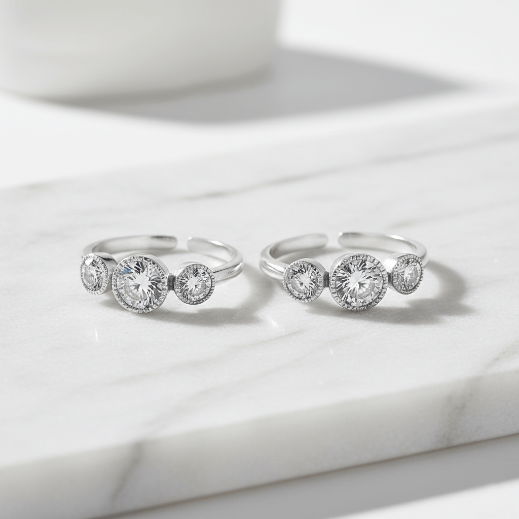 - Elegant In-Line Design: The toe ring showcases a sleek in-line arrangement, placing three dazzling Zirconia Stones in a row. This design creates an elegant and elongating effect on your toes, adding a touch of grace to your overall look.