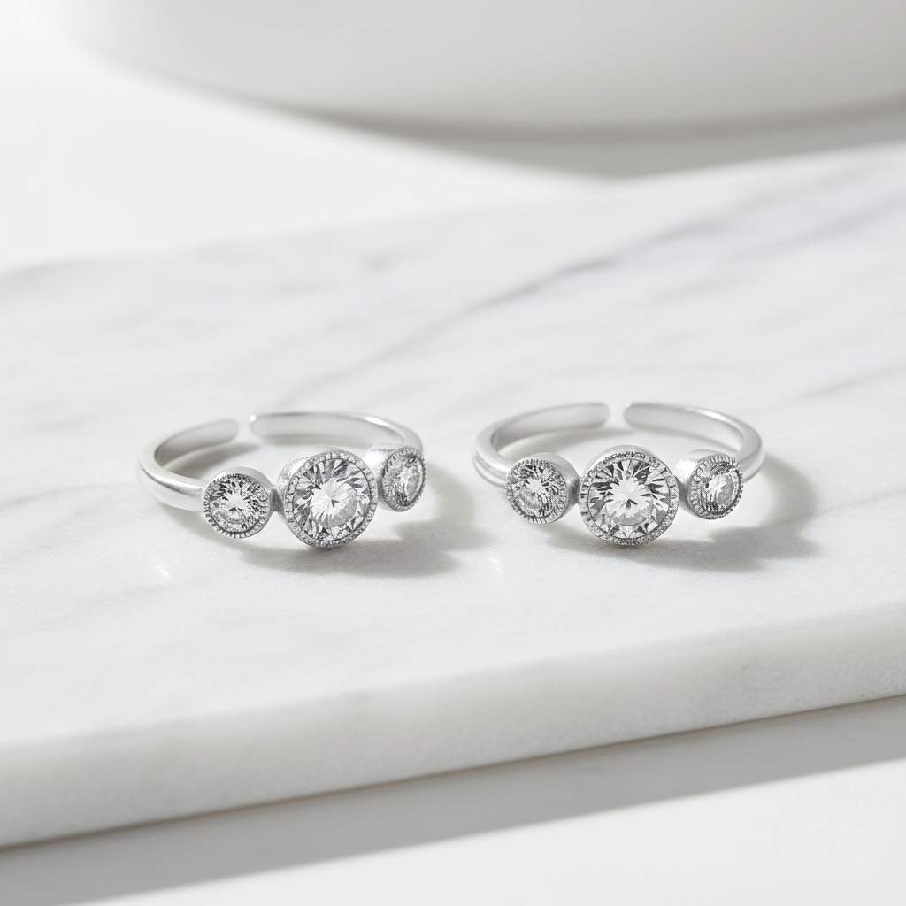 Introducing our stunning Toe Ring featuring an In-Line Design with Three Zirconia Stones in Silver, a silver toe ring design that seamlessly blends sophistication with a touch of sparkle. Here’s why this toe ring is a must-have addition to your jewellery collection.