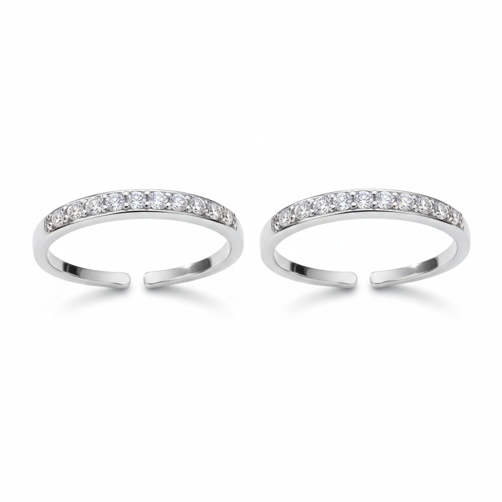 Step into a world of contemporary glamour with our Leg Thumb Toe Ring featuring In-Line Zirconia Stones in Silver, where each step becomes a radiant celebration of individuality and refined taste.