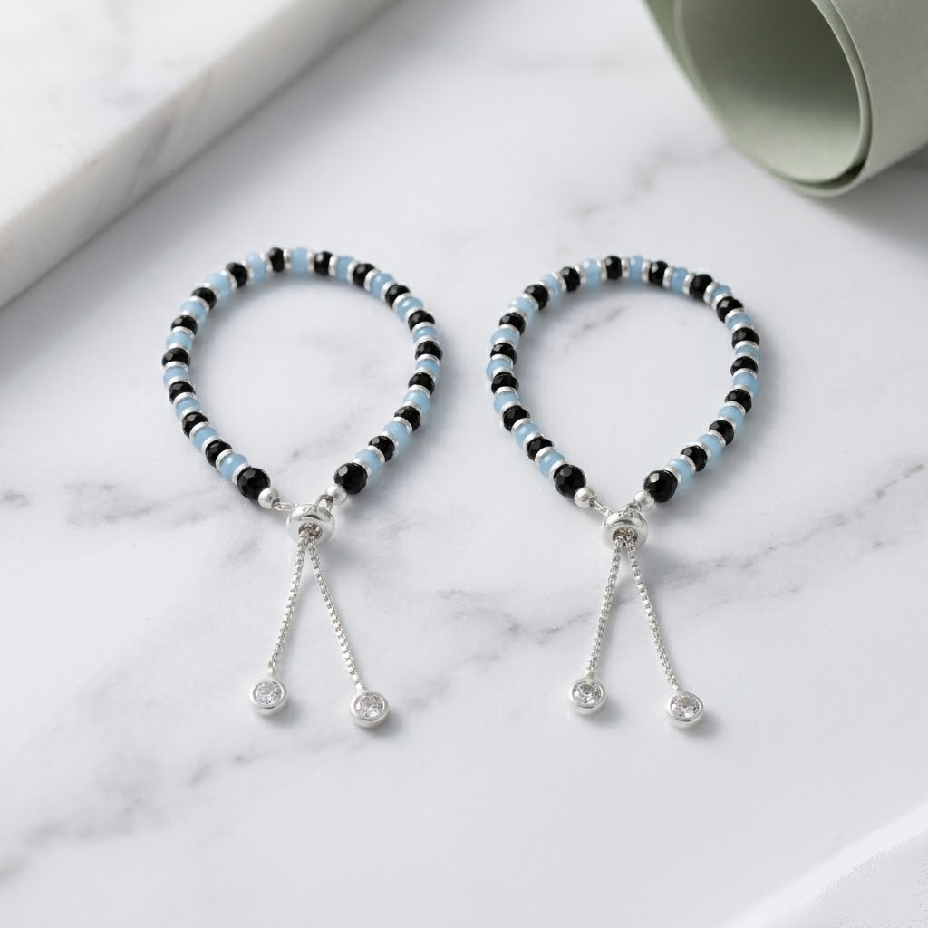 Whether you’re looking for traditional baby jewelry or a meaningful keepsake, these blue beads nazariya bracelets are a wonderful choice.