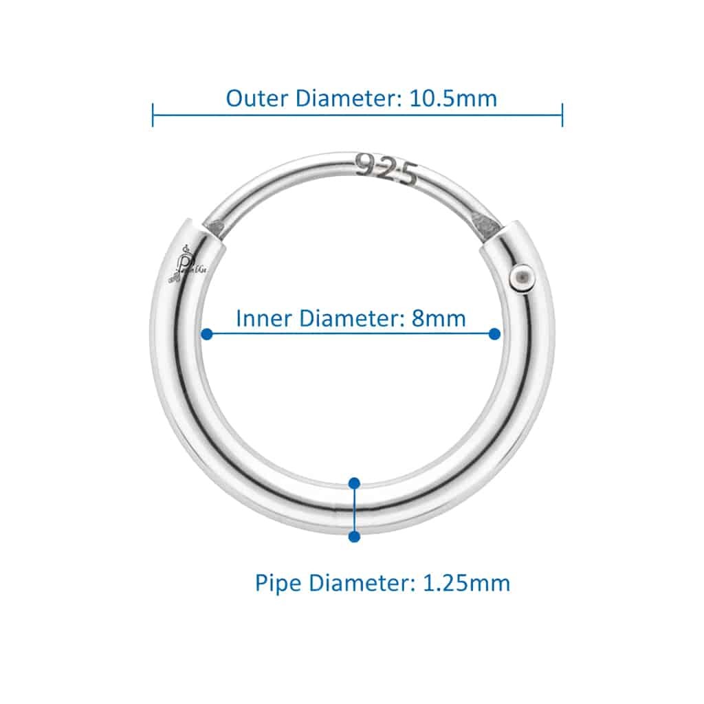 A simple touch of silver can make all the difference. This 925 sterling silver nose ring is designed with a smooth, polished surface that adds an effortless charm to your everyday style. With an 8mm inner diameter, it fits comfortably and sits perfectly on most nose piercings, offering both style and ease of wear.