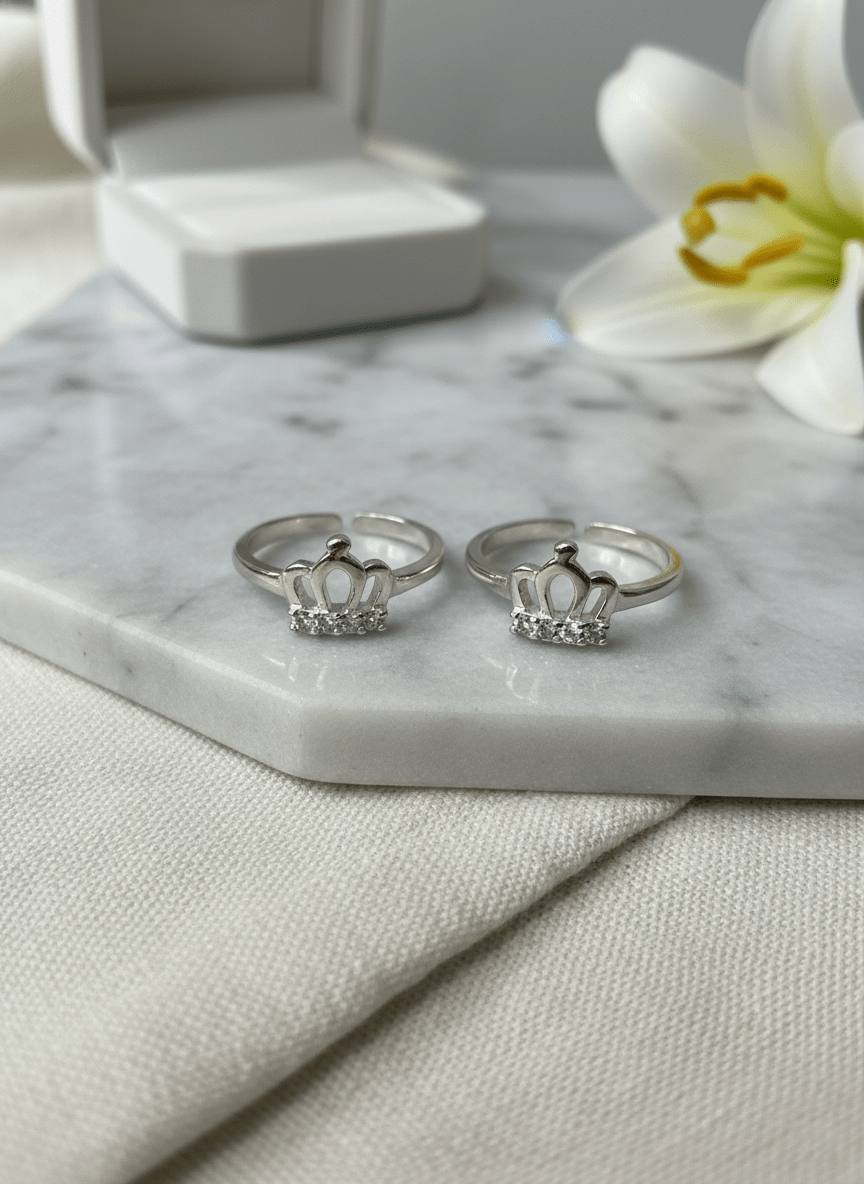 Discover the beauty with our CZ Crown Toe Rings in Silver, a classic silver toe ring design where each step becomes a graceful expression of understated elegance and timeless style.