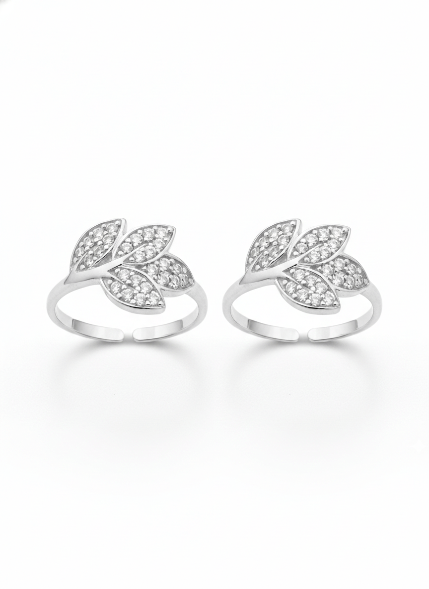 Add a touch of sparkle to every step with these CZ leaf design toe rings. The cluster-set stones create a bright leaf motif, and the open band makes them easy to adjust for a comfortable everyday fit.