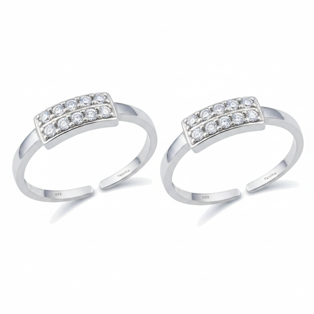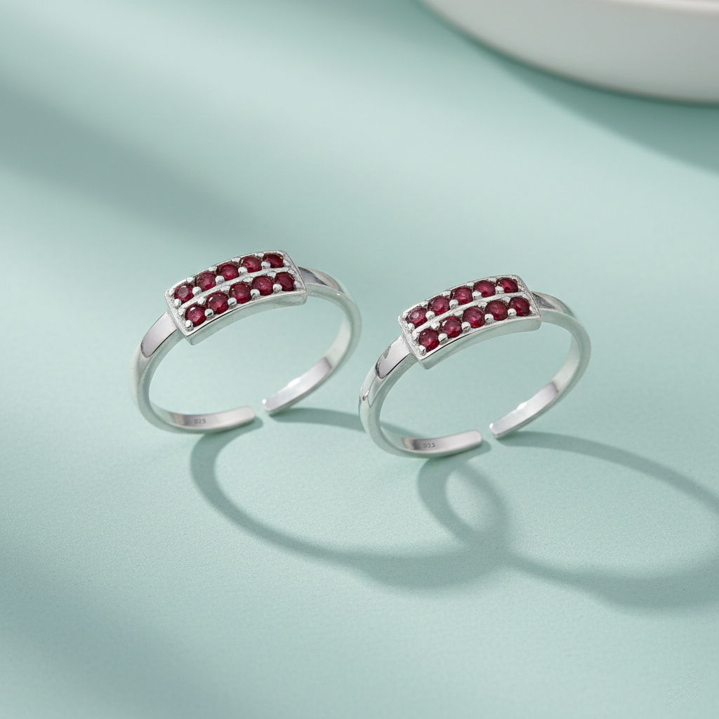 Silver double line toe rings adorned with zirconia stones are the ideal piece of footwear to elevate your feet. This elegant toe ring silver design comes in red and white, and both are adaptable enough to go with any outfit or occasion