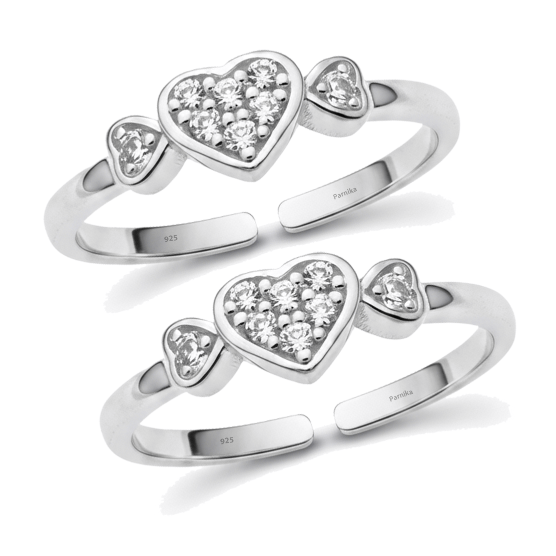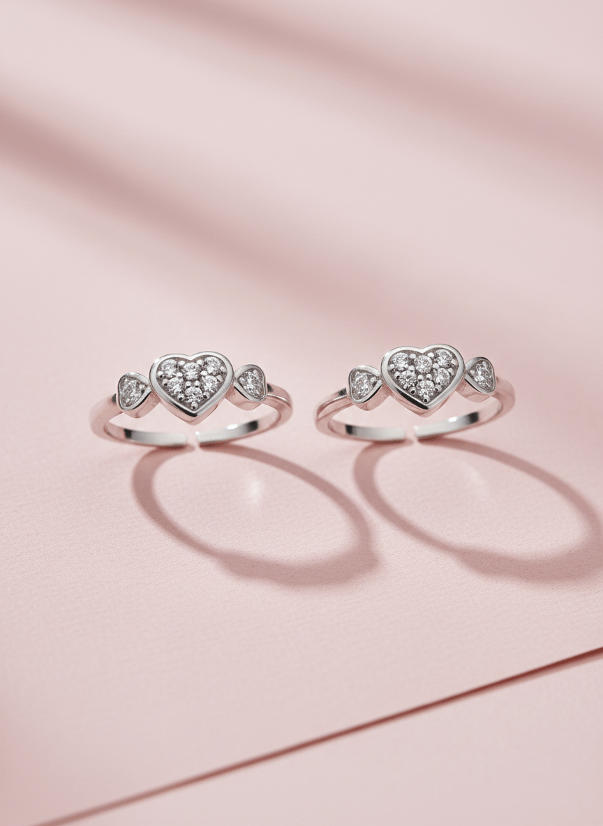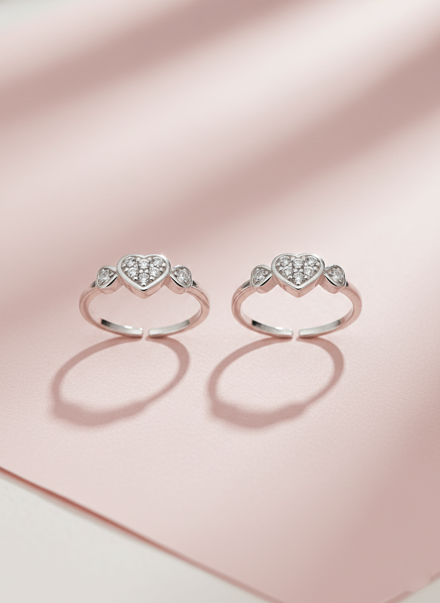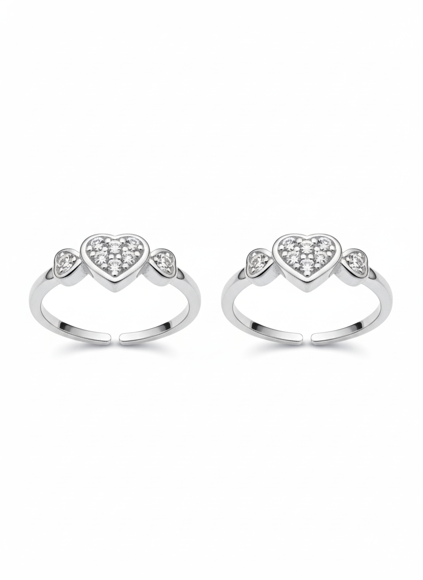 Elevate your style with our stunning Triple Heart CZ Toe Rings. Crafted with exquisite cubic zirconia clusters, these adjustable toe rings feature three beautiful heart designs that sparkle with brilliant clarity. Perfect for adding elegance to any look, these versatile pieces work beautifully for casual outings or special occasions. The comfortable adjustable fit ensures these heart CZ toe rings stay secure and perfectly positioned. Each piece showcases premium cubic zirconia stones that catch the light beautifully, creating a dazzling effect. Ideal for toe ring enthusiasts who appreciate both design and quality craftsmanship.