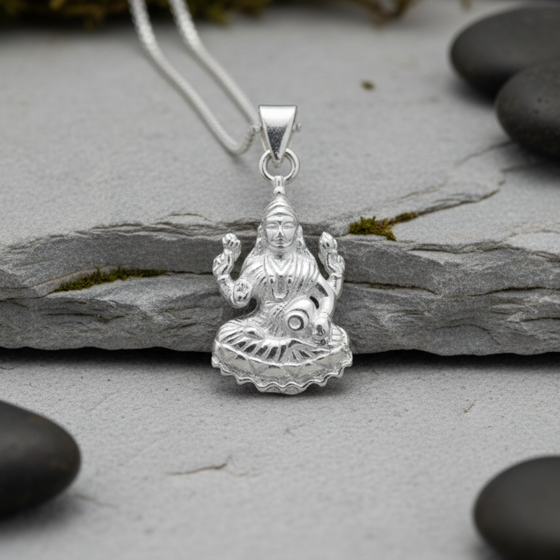 Experience divine grace and abundance with our sacred Lakshmi pendant, a powerful symbol of wealth, prosperity, and good fortune. Goddess Lakshmi, the divine mother of wealth and abundance, is worshipped across Hindu traditions for blessings of financial success and spiritual prosperity.