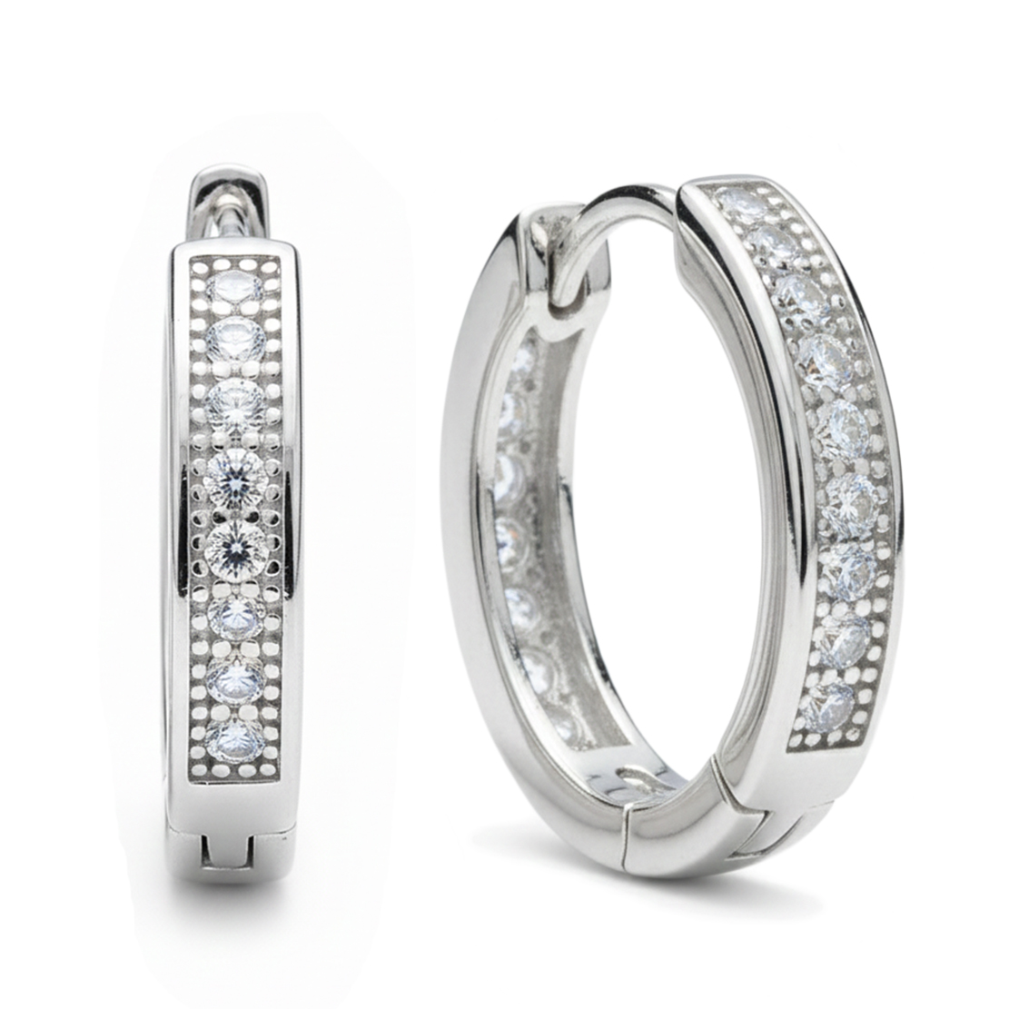 Layered CZ Huggie Hoops Bali Earrings in Pure 92.5 Sterling Silver For Girls & Women