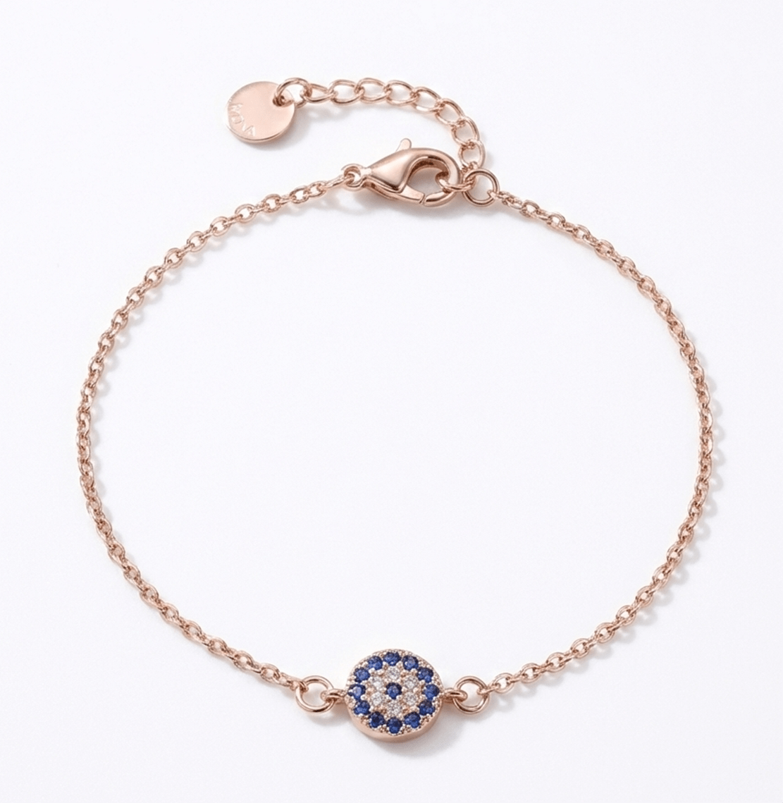 Add a touch of elegance to your jewellery collection with this exquisite sterling silver bracelet. The centrepiece features an evil eye charm cubic zirconia stone, beautifully encircled by smaller stones in a classic halo setting that maximises sparkle and sophistication. The delicate chain offers adjustable length with an extension, ensuring a perfect fit for most wrist sizes. Crafted from genuine 925 sterling silver, this bracelet combines timeless design with contemporary style. The secure spring clasp closure keeps it safely on your wrist, while the dainty proportions make it suitable for both everyday wear and special occasions. The versatile design allows for easy layering with other bracelets or wearing as a standalone statement piece.