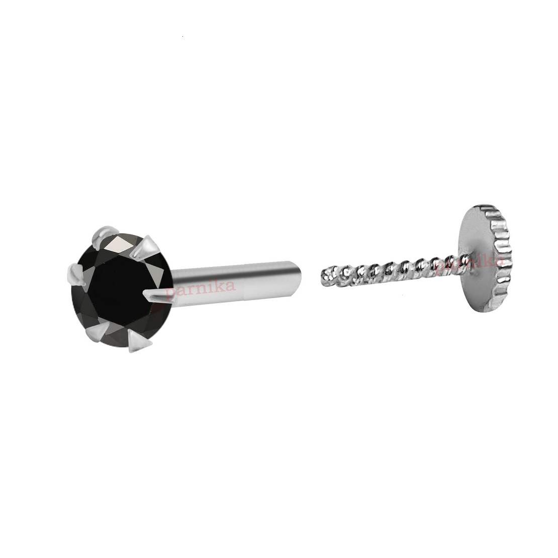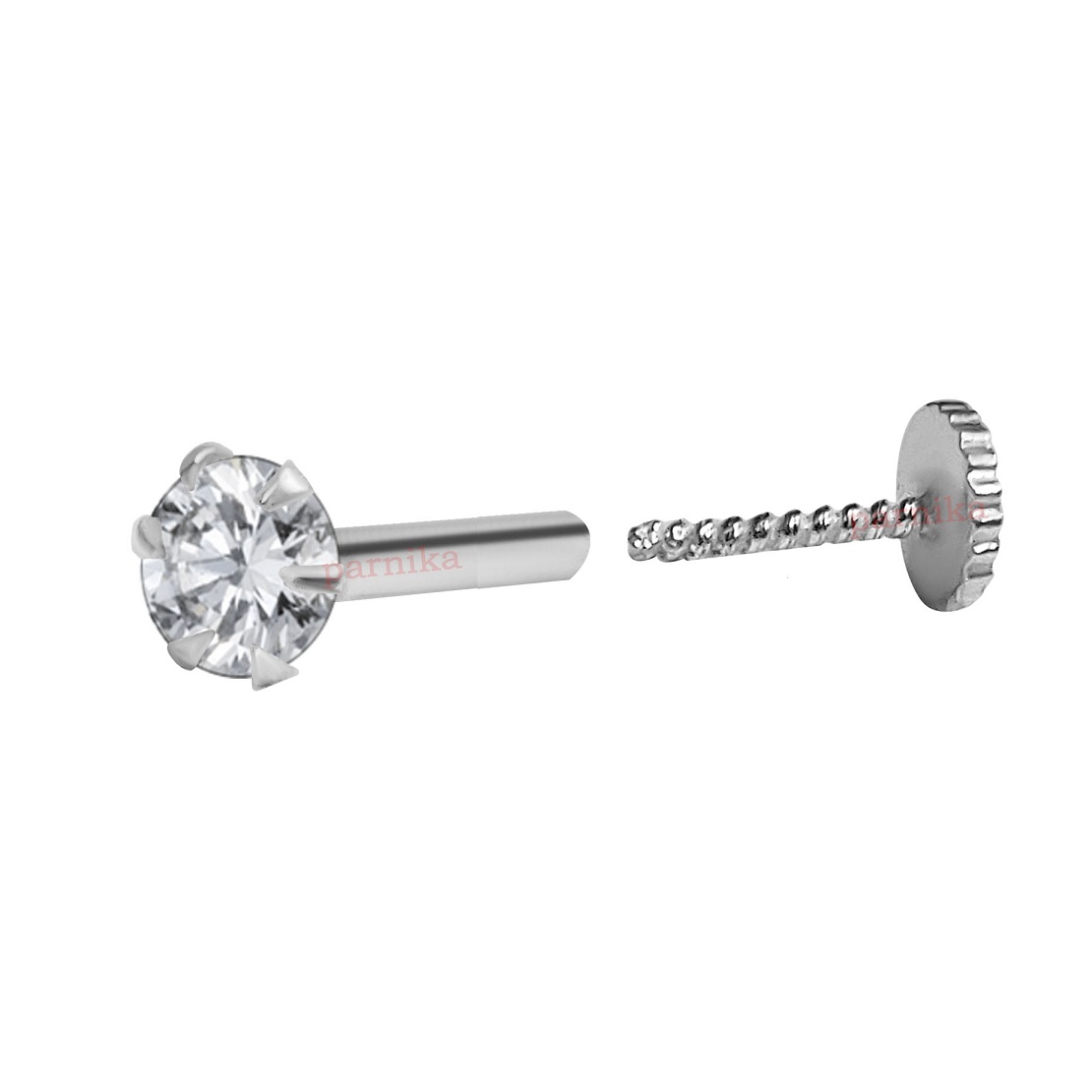 Parnika Solitaire CZ Small Size Piercing Silver Nose Pin With Screw Back in Pure 92.5 Sterling Silver for Girls/Women. Nose Pin can be worn by rotating the screw.