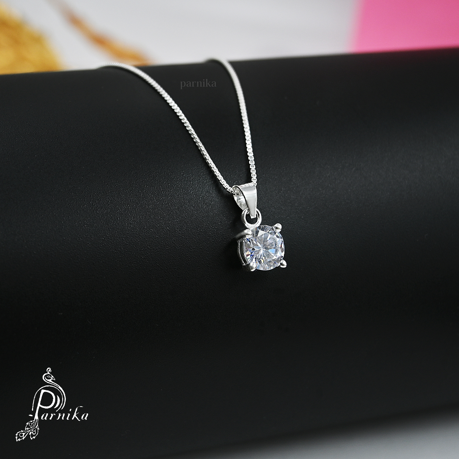 Parnika presents 925 Sterling Silver Solitaire Zircon Pendant for Women and Girls. Please note chain is not included with this pendant. Images are enlarged for better viewing.
