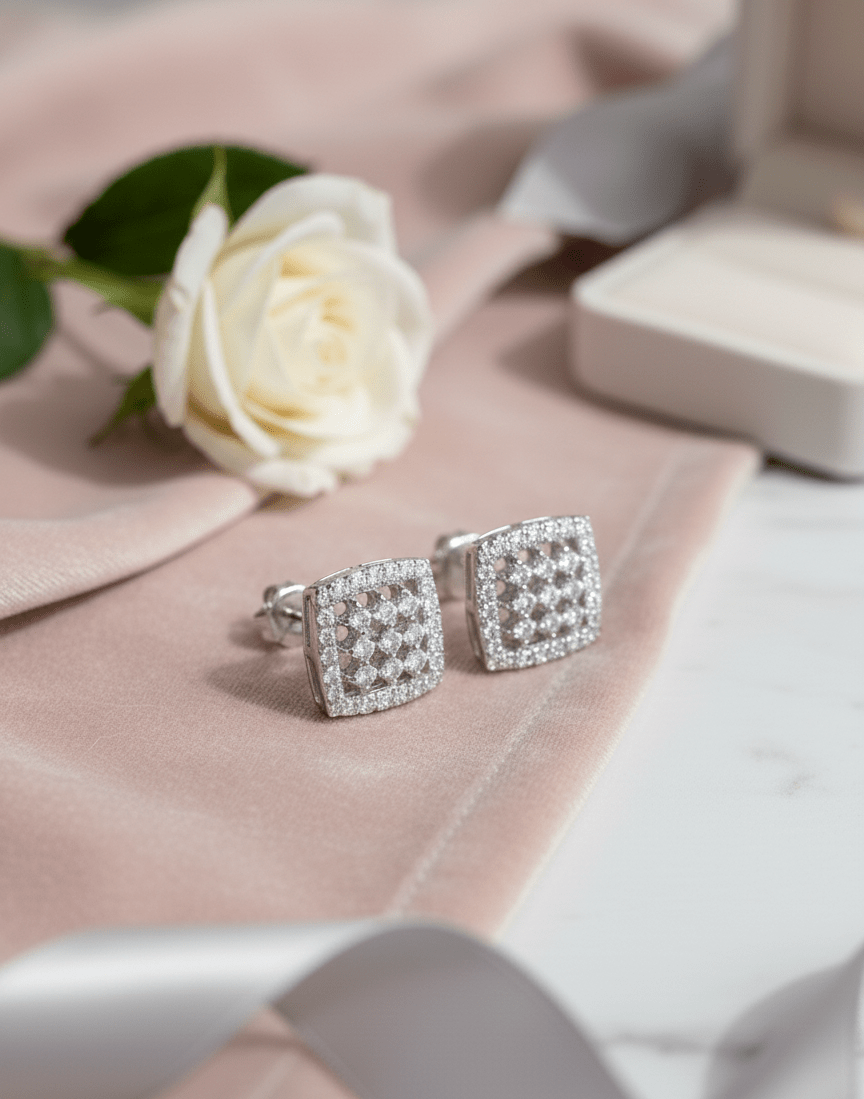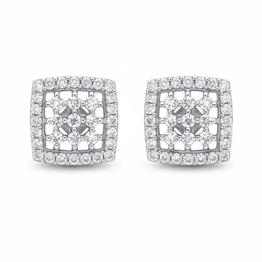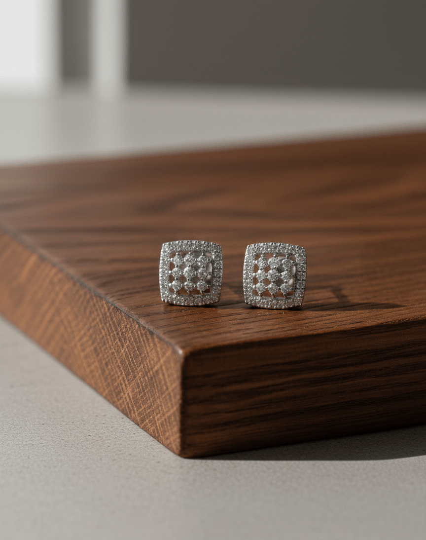 Square CZ Cluster Studs Silver Tops Silver Earrings in Pure 92.5 Sterling Silver. Good to go for every occasion from party to office to regular wear. Choose colour to suit every attire of yours. Note: Images are enlarged for better viewing.