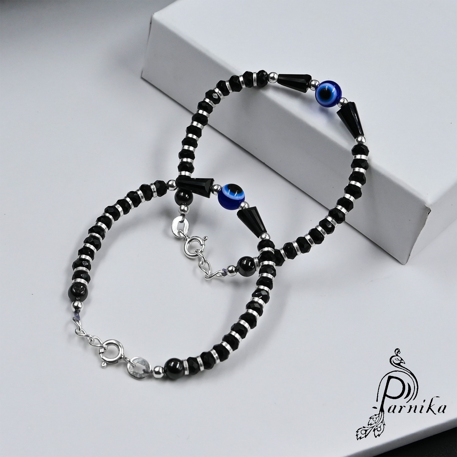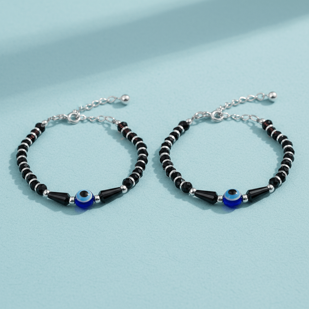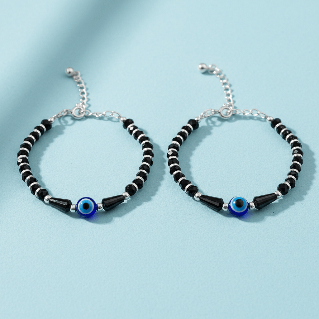 Parnika (Formerly MJ) 925 Pair of Trendy Evil Eye Nazariya (Kids Bracelet) in 92.5 Sterling Silver for Kids. Nazariya being smooth is very comfortable for your toddlers.