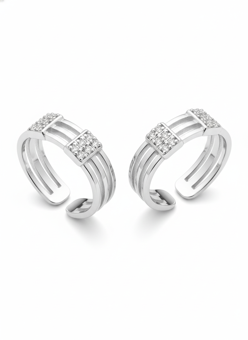 Discover our stunning Triple Band CZ Toe Rings featuring an adjustable design with brilliant cubic zirconia stones. Each pair showcases three sparkling bands crafted with premium quality, perfect for adding elegance to your feet. These adjustable rings combine style with comfort, offering versatile wear for special occasions or everyday fashion. The fit ensures they work for most sizes, making them an ideal gift choice. Elevate your accessory collection with our exquisite cubic zirconia designs.