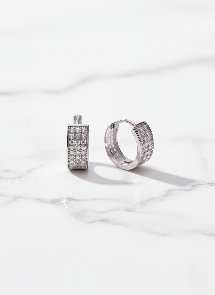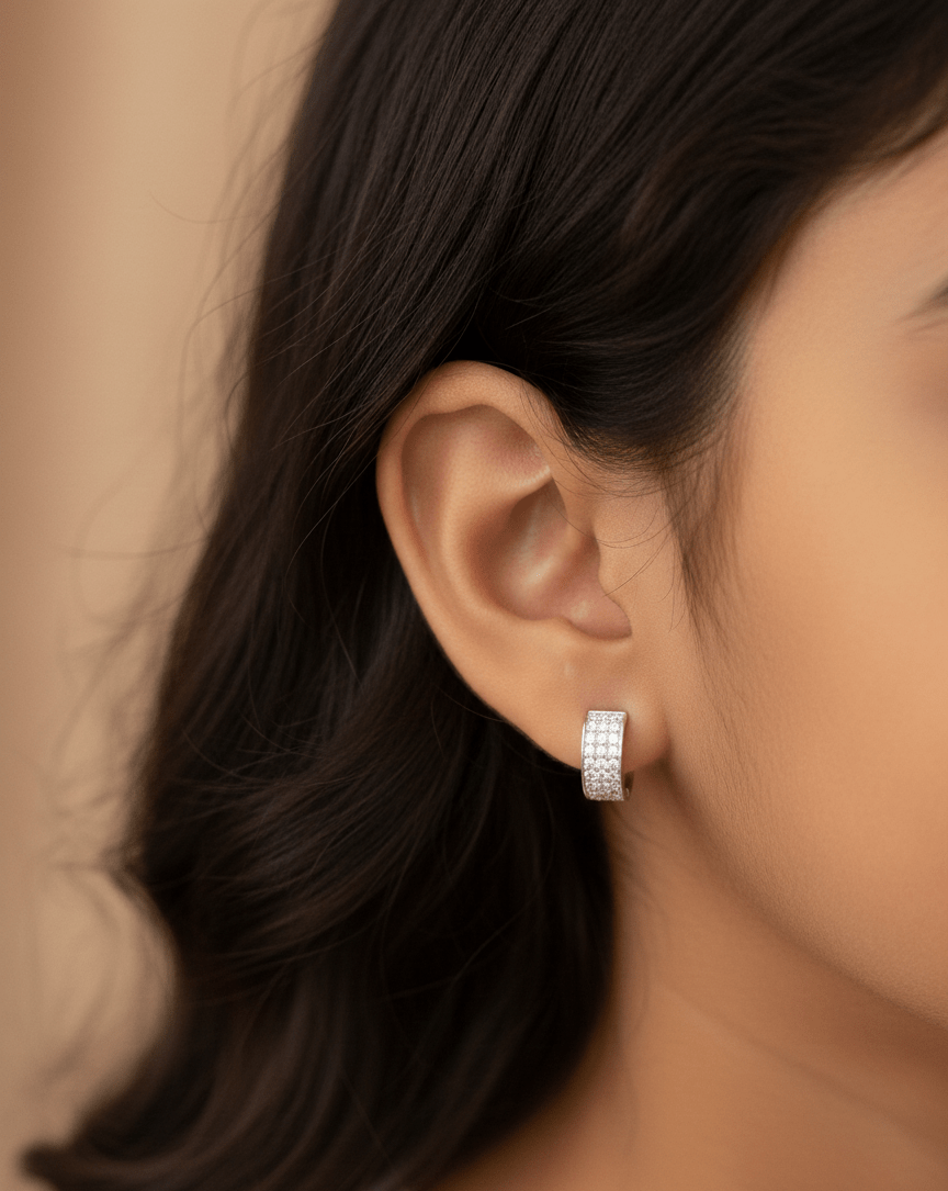 White CZ Huggie Hoops Bali Earrings in Pure 92.5 Sterling Silver For Girls & Women